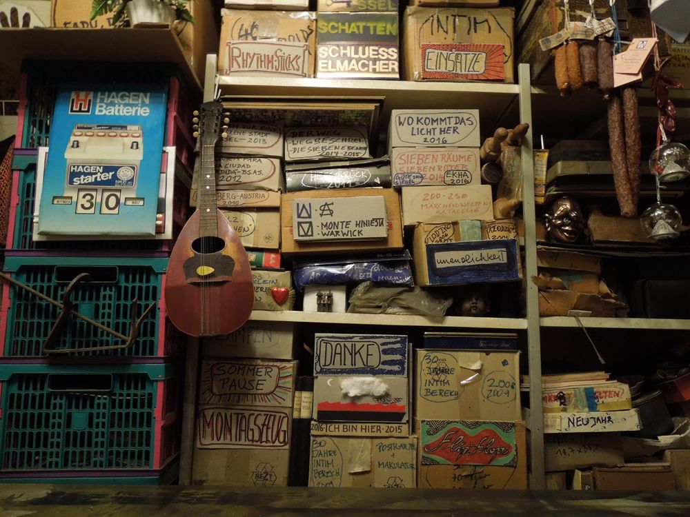 Wie im Aufruf des E•K•H•A angekündigt, wurde jede Grußbotschaft, nach ihrer Ankunft in Kassel, zuerst am Kistenregal hinter der Herrenabend-Tafel des E•K•H•A, in Verbindung mit dem entsprechenden Ankunftsdatum, präsentiert und danach für ihre weitere Präsentation im Katalog mehrfach fotografiert. Pro Beitrag wurde jetzt eines dieser Fotos für die Web-Präsentation der Grußbotschaften ausgewählt und – nach dem Datum seines Einganges – hier hintereinander aufgereiht, plus dem jeweiligen Datum, dem Namen seines Produzenten und dessen Herkunftsort und -land.