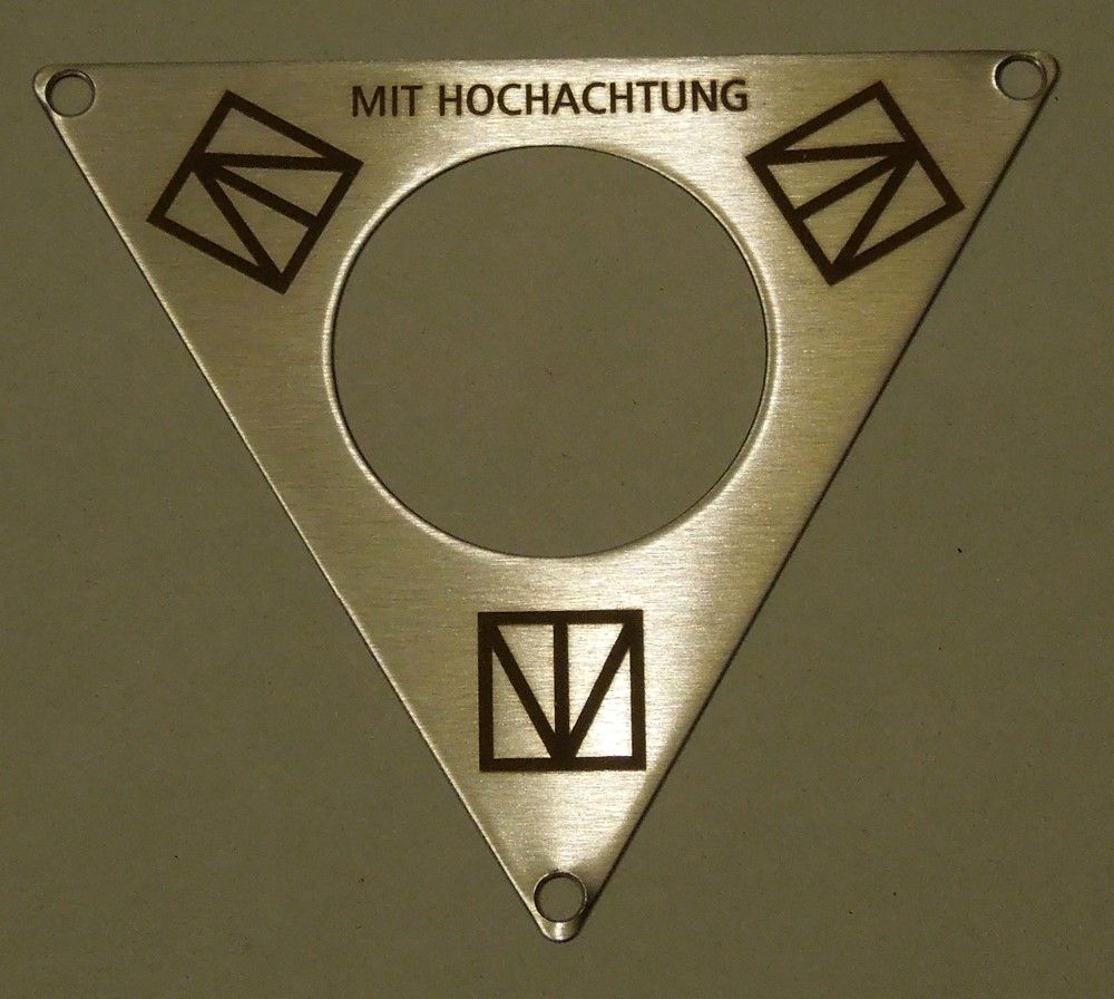 der sich aus der Idee zur Foto-Urkunde (s.o.) entwickelt hat, ist mittlerweile an 15 Persönlichkeiten verliehen worden, deren Namen ungenannt bleiben werden. Hierbei handelt es sich um eine hölzerne Schatulle aus unbehandeltem Buchen- oder Birken-Schichtholz (Format von 14 x 14 cm, einer Höhe von 3 cm und einer Auflage von 23 Exemplaren), die sich wie ein Buch öffnen lässt und in ihrem Innern einen dreieckigen, metallenen und mit Gravuren übersäten Serviettenring birgt. In jede Schatulle ist der Namen des entsprechenden besonderen Ehrengastes eingraviert worden, dem sie dsanach überreicht würde.
